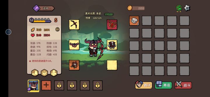 灼烧套,固定三件套,火弓,火花宝物,火项链,其他防御装备以急速,暴击,攻速为主,缩短武器和项链的技能CD。宝物灼烧瓶子,由于技能作用与火攻重复,所以用无影代替,增加攻击。由于火法不是爆发玩法,攻击后需要时间出伤害,又比较脆,所以需要多点血和防,防止暴毙,用五十饱食度吃素食,加双防和双闪,剩余全吃肉食。tip:25关以后,商店要升完10级,身上装备要至少全部刷蓝,否则伤害不够,容易被拖死。
