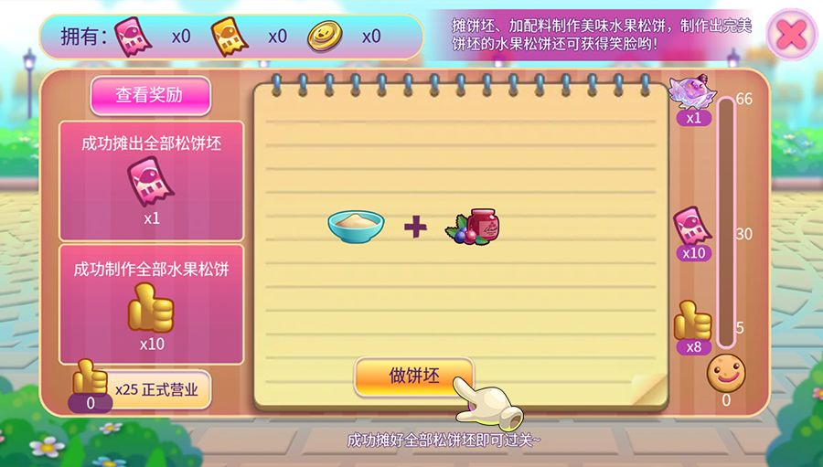 点击【做饼坯】,完成饼饼第一步。