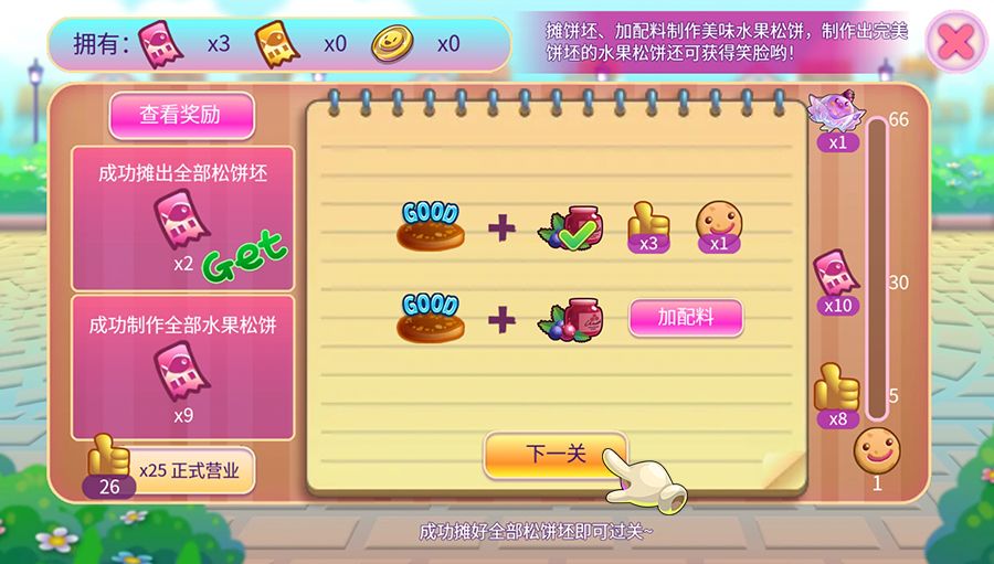 完成饼饼后还可以增加配料,以此获得更多奖励。