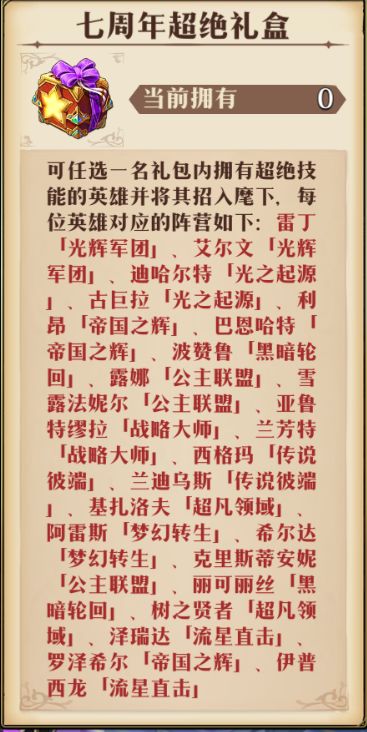 下图是七周年活动本《造梦庆典大作战》刷材料赠送的超绝自选,但是要活动开启的第三天才能拿到