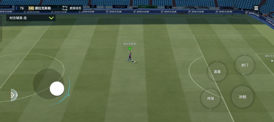 滑动屏幕左侧球员会开始盘带,盘带方向是虚拟摇杆的方向。 球员的盘带数值越高,盘带越丝滑。比如梅西,内马尔等球员 。