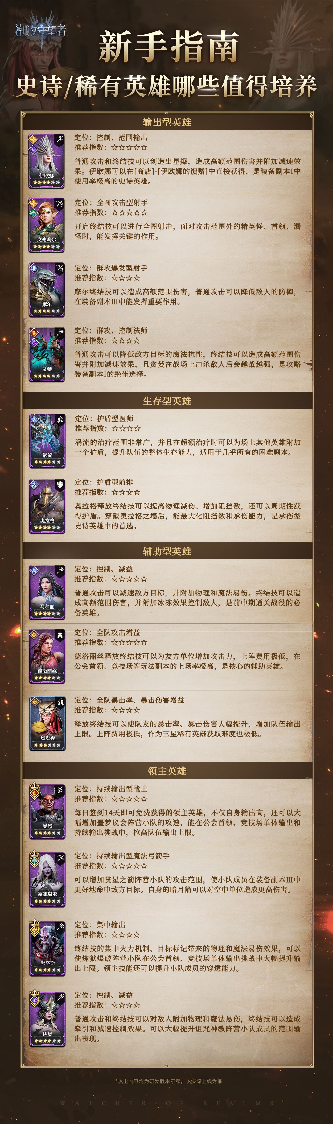 新手指南丨史诗稀有英雄推荐&新手免费英雄一览