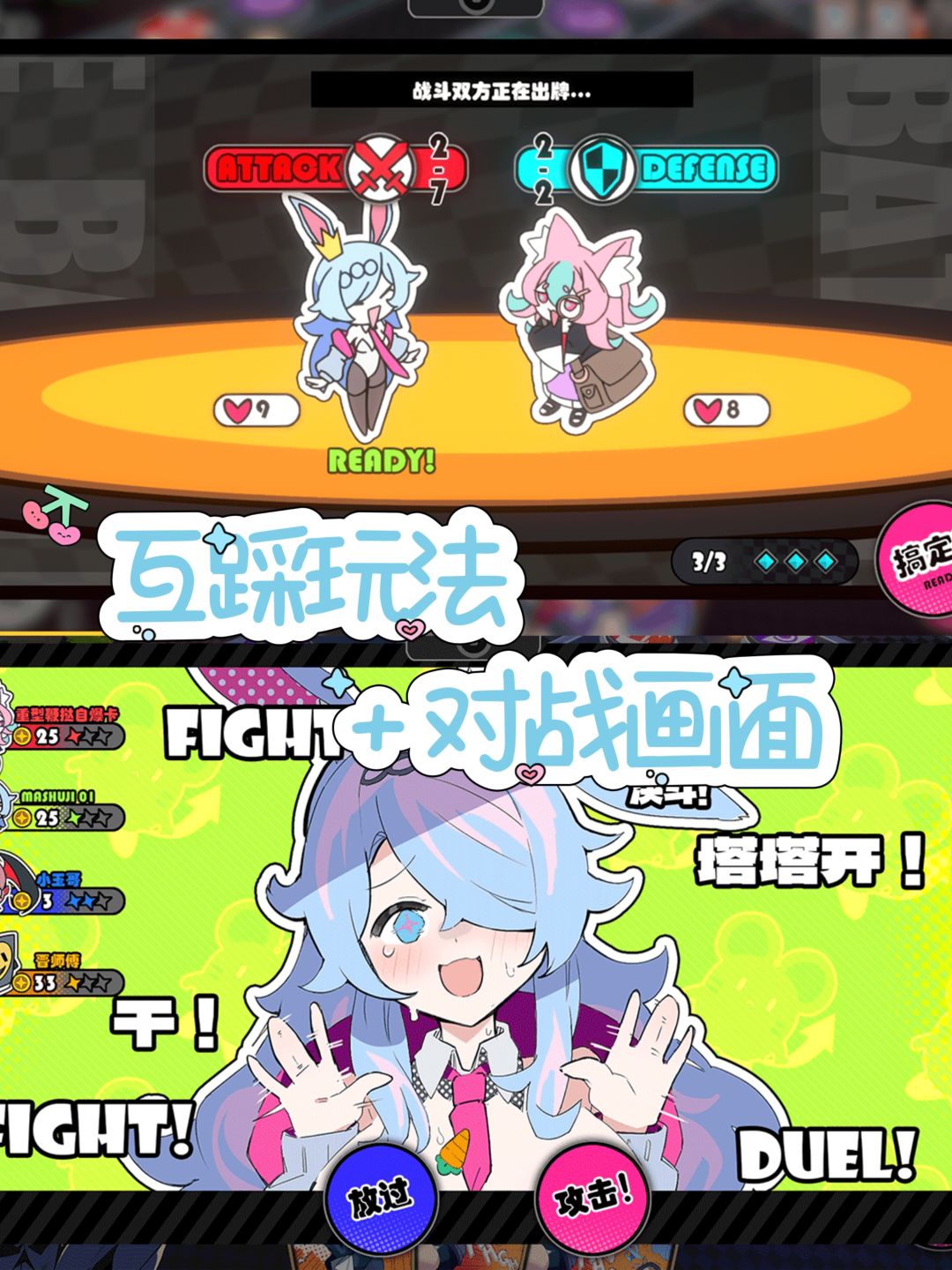 🌟卡牌系统:游戏中没有传统游戏中的装备,而是使用各种卡牌来取得胜利。卡牌分为攻击、防守、反制、效果四类,可以在对局中进行查看和使用。