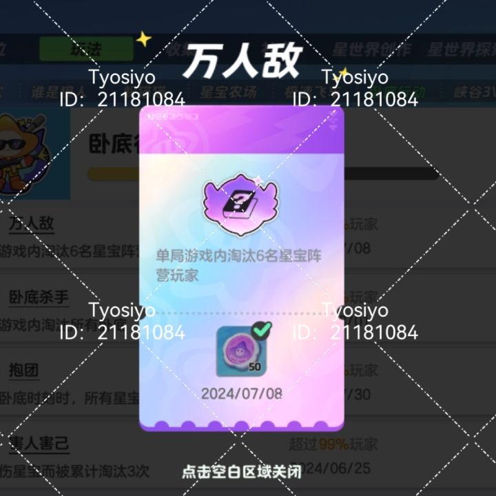 ✅万人敌:单局游戏内淘汰6名星宝阵营玩家