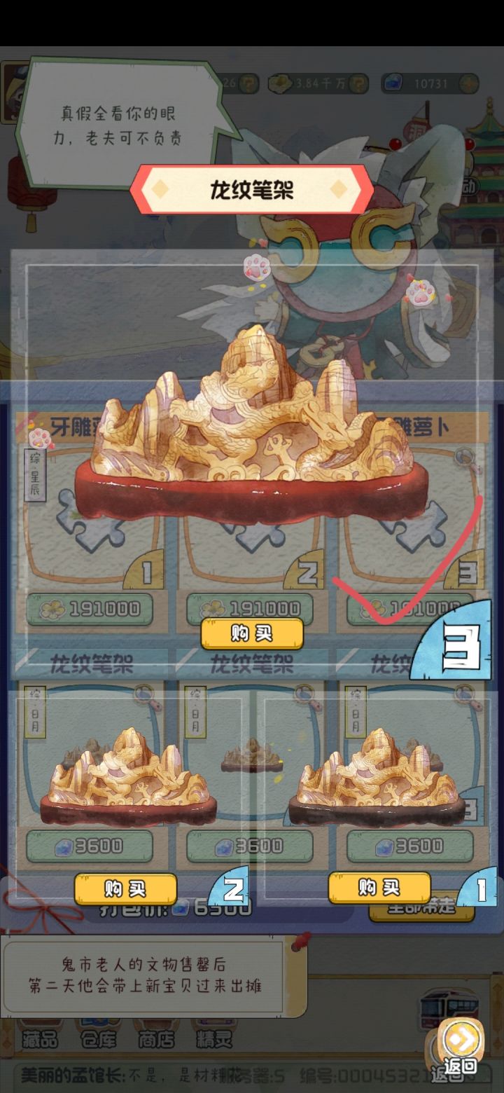 龙纹笔架:三个藏品底座颜色都不一样,要选底座那个最红的。