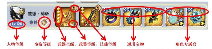 1. 人物(命格、天赋、等级、援护技、面板,人物皮肤不提供额外战力只提供竞技场得分加成)。