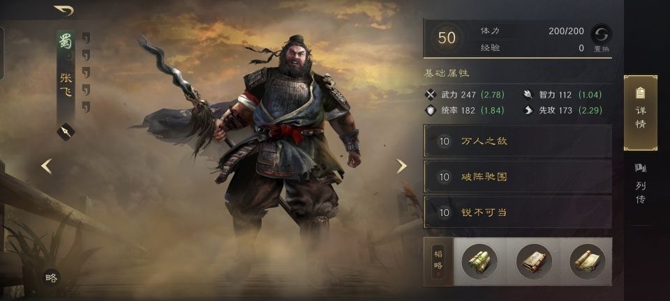 关羽和张飞二人身处鱼鳞阵的后排,获得了会心加成。为了不浪费三爷仅次于吕布的武力值,在万人之敌的基础上,后续选择搭配了破阵驰围和锐不可当。再结合韬略库里的新亭侯刀铭,万人之敌100%的发动率给对手套畏惧,就更是觉得400%的兵刃伤害和破甲效果是必不可少。