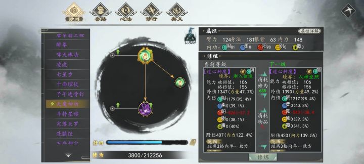外功其实核心功法只有1个。天魔神功的道心魔种,它有一个小小的吸血能力,有2回合的吸血,能增加生存能力。别人打你你反手打回去还能吸口血。而且可能是别人打你一下你就打回去两下。