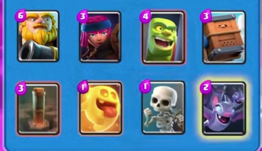 看,这套卡组将原本的骷髅守卫换成了灵活的小骷髅兵,主打控制的电法则换成了渔夫。这套卡组继承了锅炉家具的打法,而为了针对八月赛季的版本卡组皮卡锤,特意塞进了渔夫,让渔夫把对面用来解家驹的皮卡拉过来,起到辅助进攻的效果。论防守方面,渔夫可以将对面进塔的肉盾单位拉回桥头,或是激活国王塔,百般武艺样样俱全,只需三费!这张卡对于爆发不高的锅炉家驹卡组简直是一个大福音!