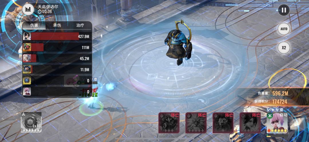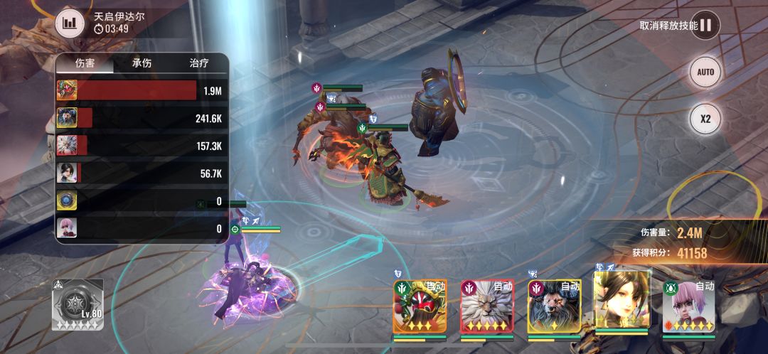 之后我们只需要在boss结界范围内,反复横跳即可,想打出高分,练度是必不可少的,上阵信息:增益三杰+海蒂+粉毛 符文推荐:英勇或者鲁莽