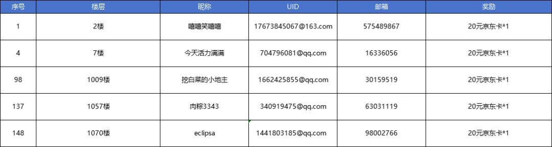 现将符合活动参与规则的中奖玩家名单公布在下方,请饼干朋友们留意~