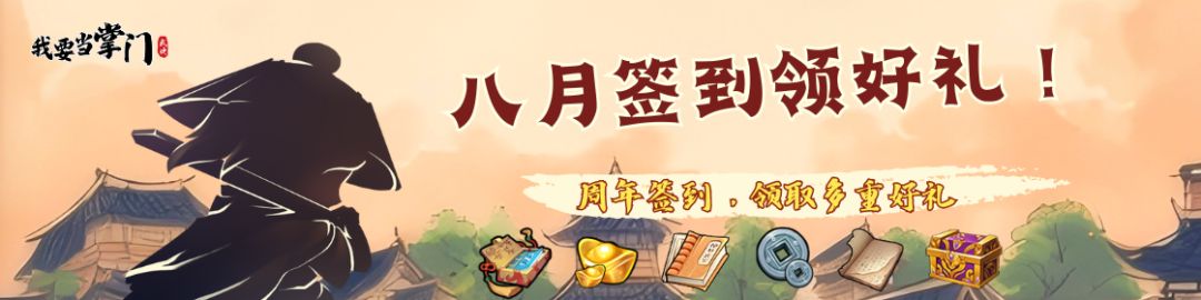 壹周年啦!参与《我要当掌门》周年签到活动,可领取究极阅历书、掌门令、秘境挑战书、元宝、精美礼物箱......多重好礼等你来拿(✪ω✪)