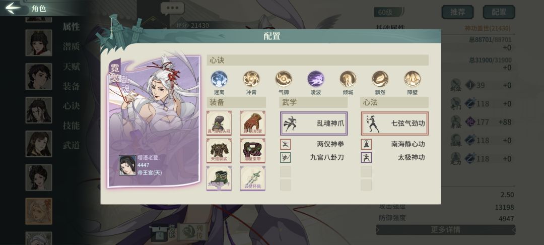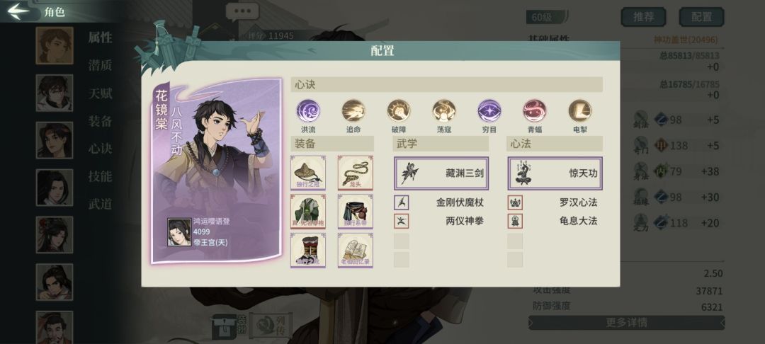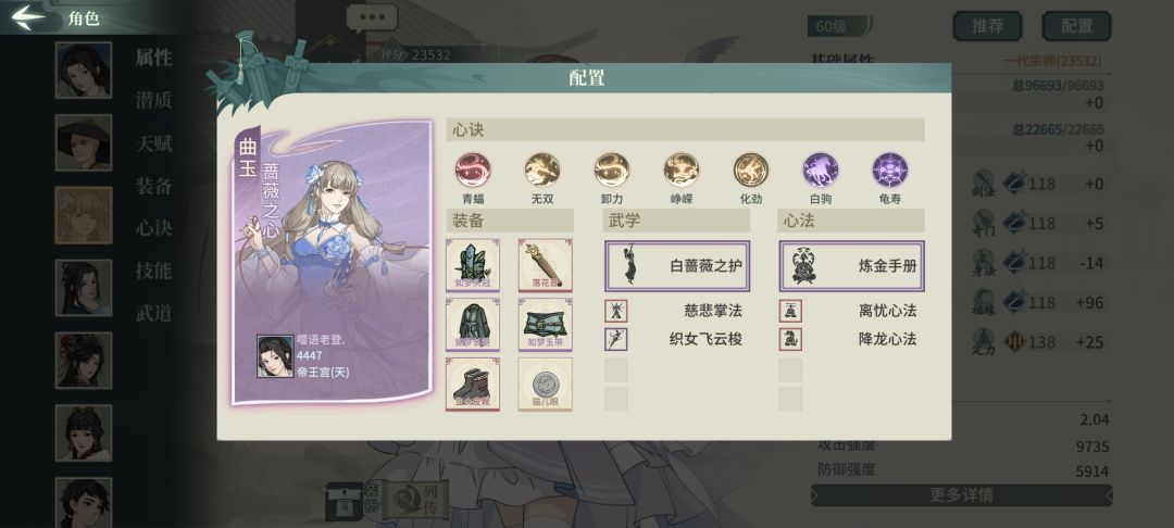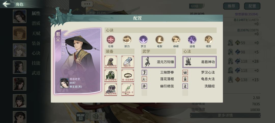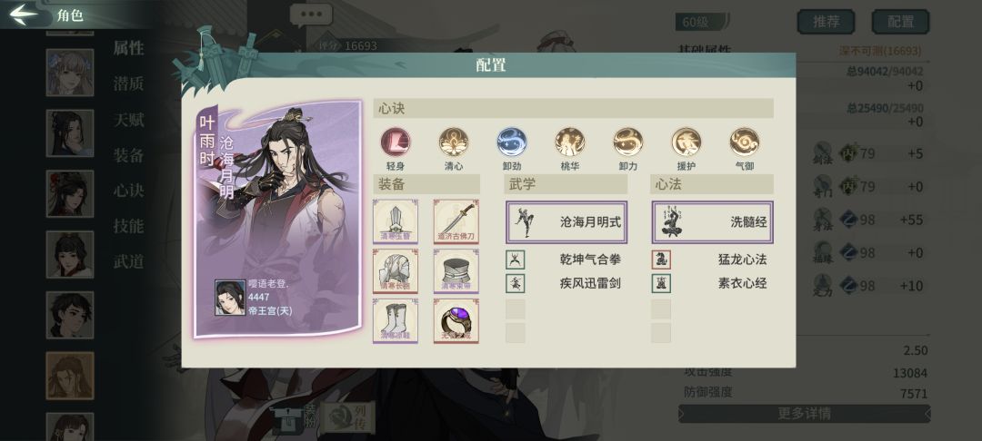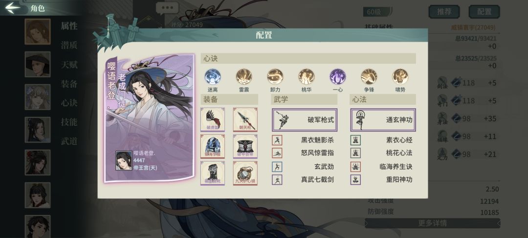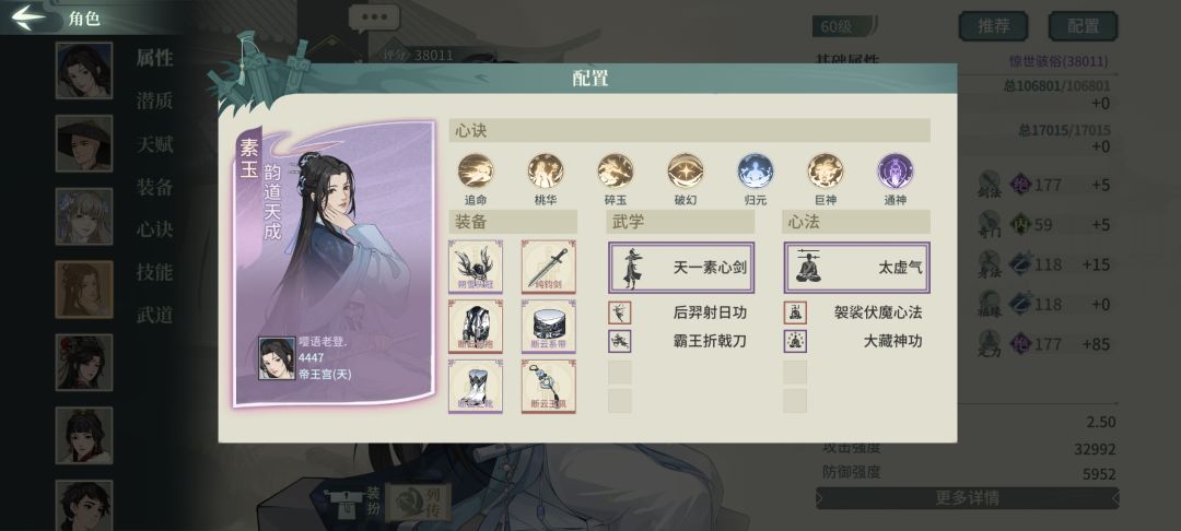 破军二号亲妈,也是我测下来最舒服的一套素玉配置,破幻是增强处理闪避的能力,也可以换迅闪等心决增加输出,无双、蛇测试下来有些陷阱,该被控还是被控,暴力一些更适合破军