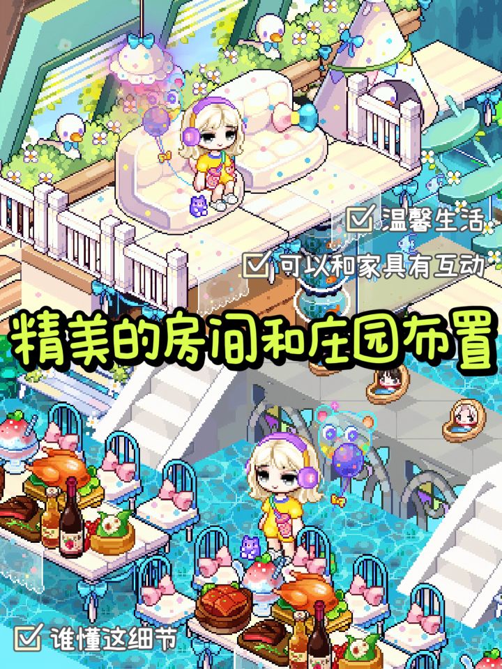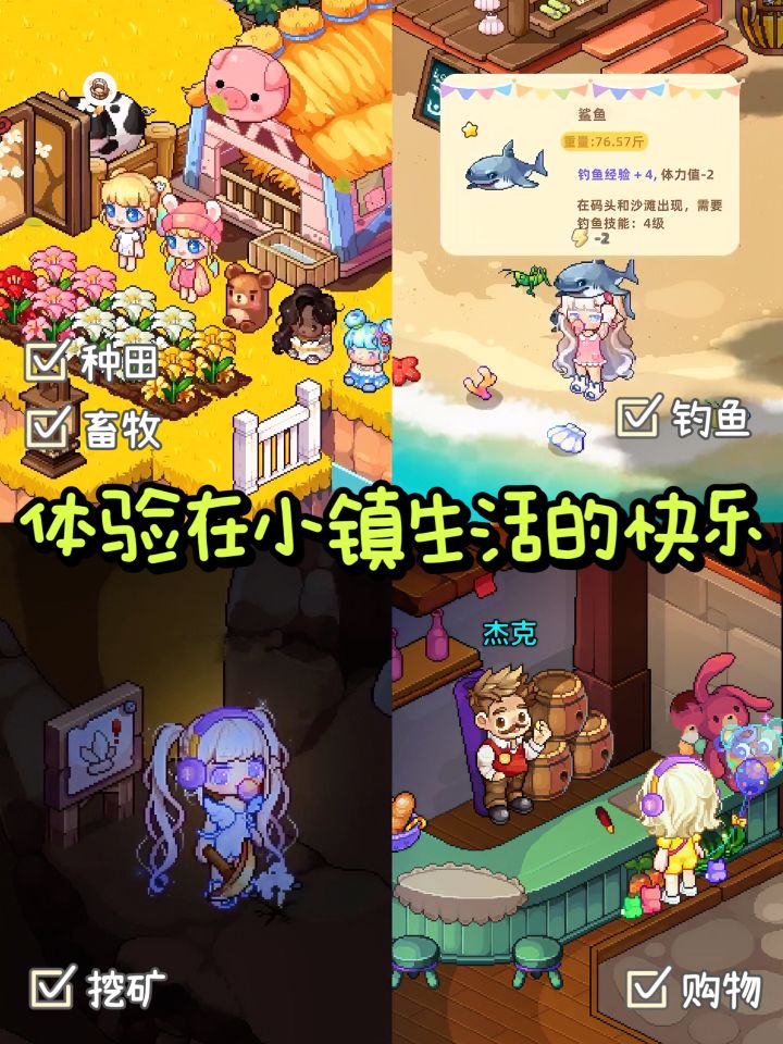 在这里 可以和好友一起 打造温馨舒适的小镇生活 各种丰富的模拟经营玩法👉种田、畜牧、钓鱼、挖矿、布置小家、购物等都能体验哦🎉