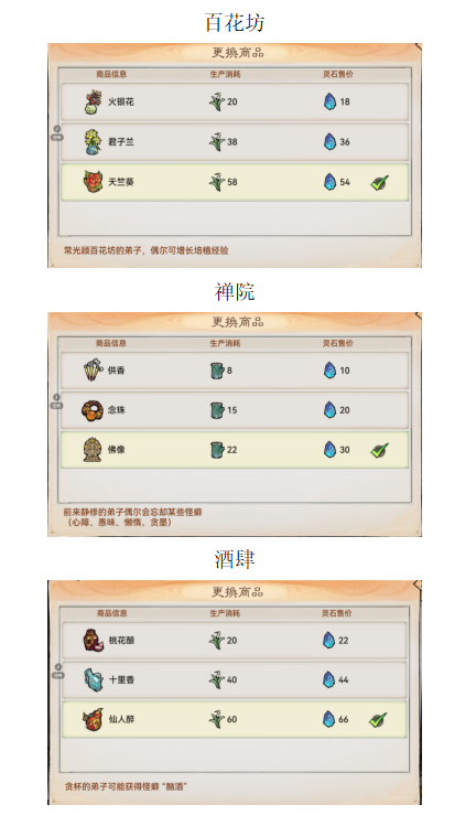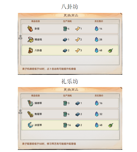 培养出好的工具人后,我们关注一下生产建筑,以图中符箓坊为例,升到五级后可以提高产量,我们可以升级一个,然后在炼丹大会加速该建筑,从而获得更多的资源,还可以再炼丹大会时候使用各种增加产量的符。最后记得给工具人们穿戴式增加经验获取的玉符。