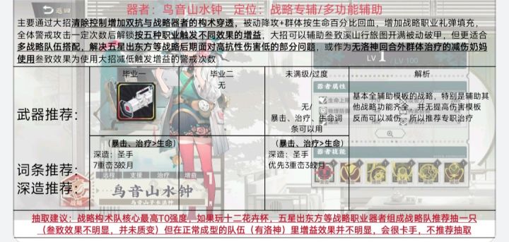 省流:推荐无强力输出必抽叁致越王,不玩战略队,有成型洛神等强力治疗器者不推荐抽取鸟音山水钟