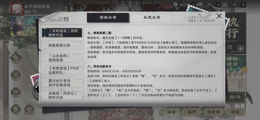 2.8月8日更新,轶闻录二+新试炼梅、松关卡