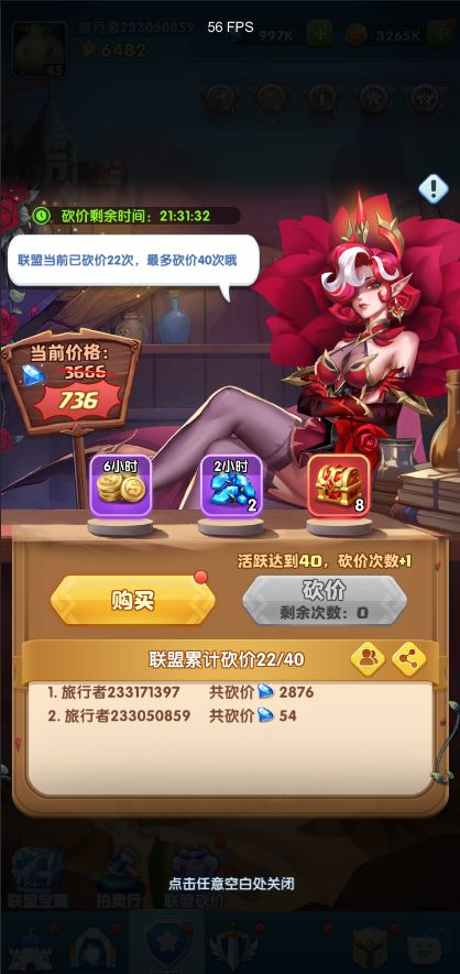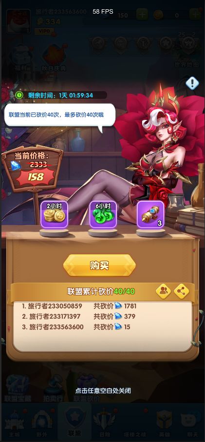 2、联盟中参与砍价的旅行者越多,礼包的购买价格也就越低!