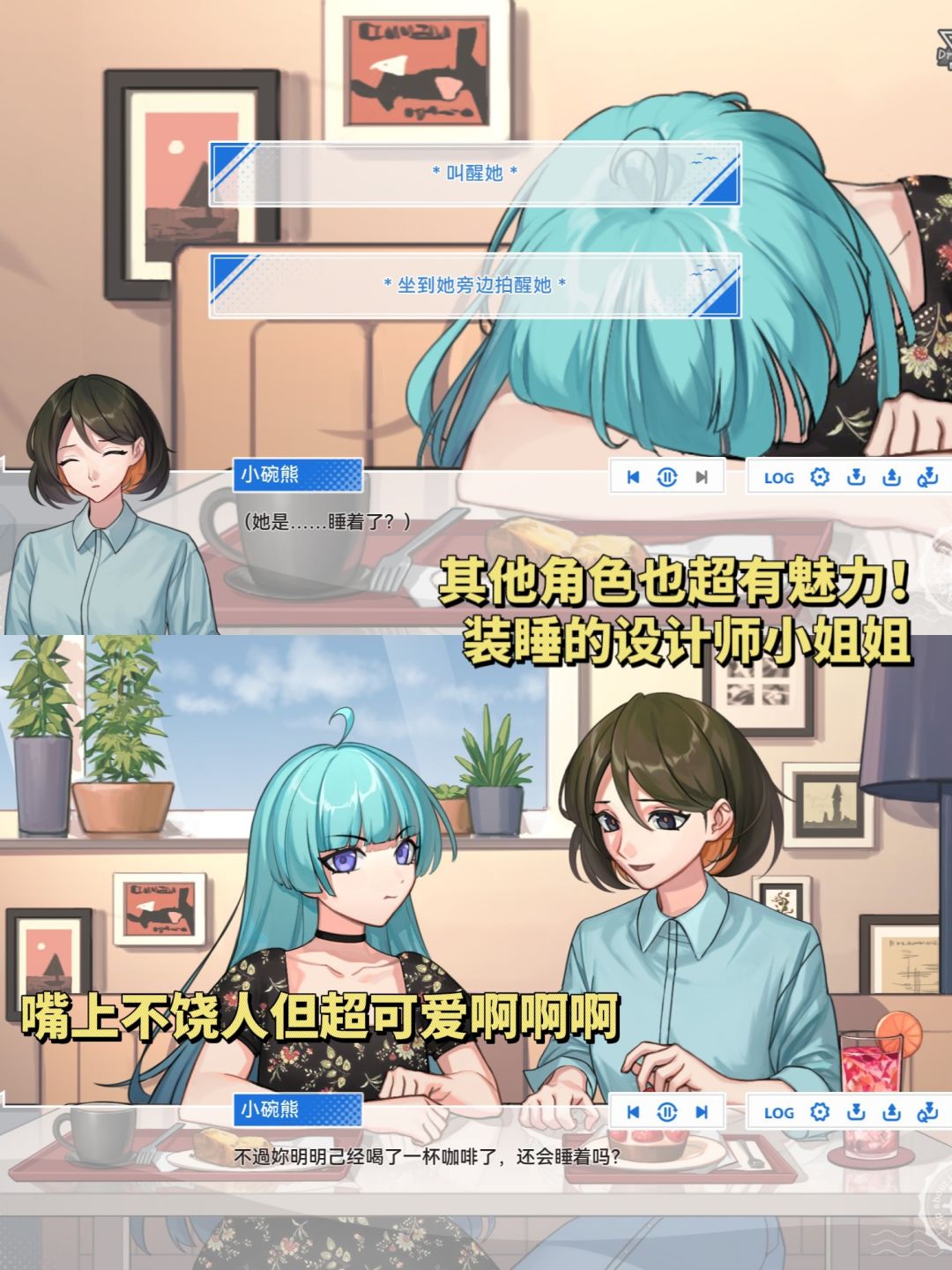 角色的对话都很成熟,会有各种关于工作、失恋的话题,还有各种现实中的梗,比如又贵分量又小的沙拉吐槽,要吵去外面吵的梗……属于会让人会心一笑的类型。