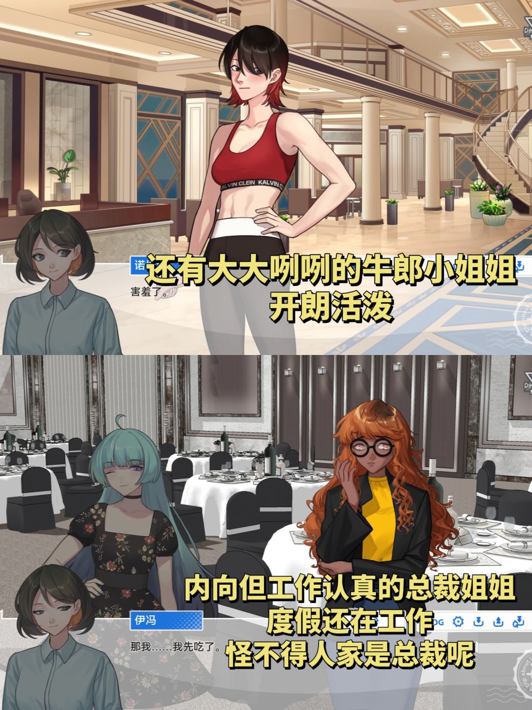 ,内向的公司总裁,娇蛮的设计师,温柔成熟的调酒师姐姐……因为全员成年人,所以聊天的感觉就是成熟的调调,还有小心试探的小心机,属于剧情不会有很大波动,但是小细节会让人在屏幕外扭成蛆的那种!
