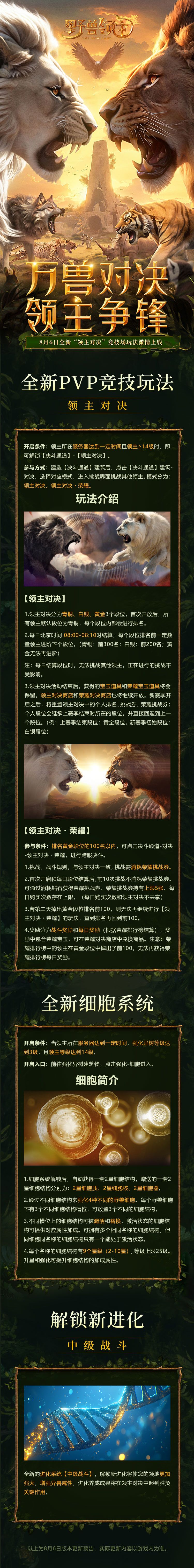 全新“领主对决”竞技场玩法将于8月6日正式上线!