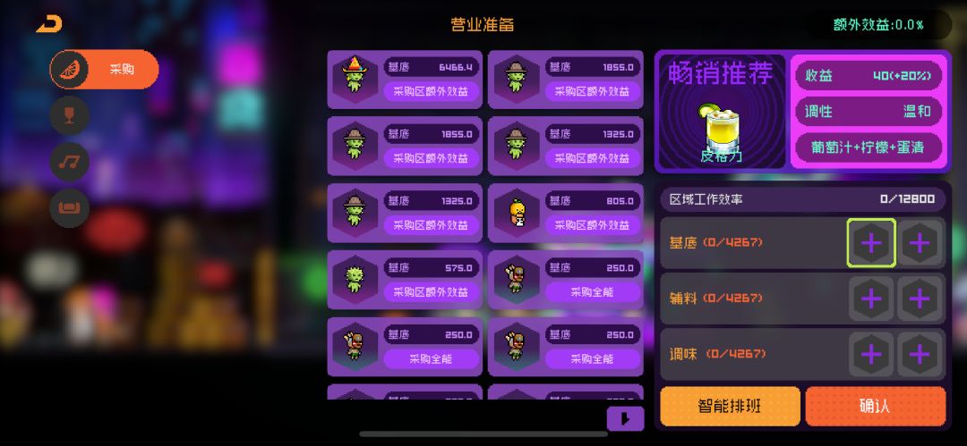 以我目前的5级商店为例,首先店面会有每日推荐的调饮和音乐方向,需要按照推荐方向进行选择,从而得到最佳收益。其次,优先把各个方向的工作效率拉满,工作效率不满会大大减少营业收入,额外技能收益属于锦上添花,无需强求,随缘即可。