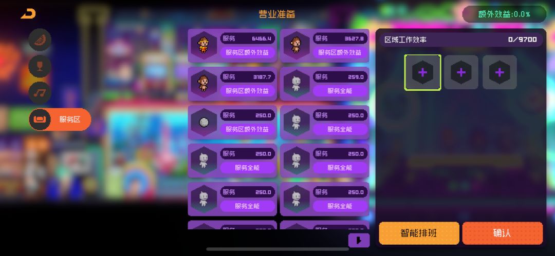 2、随着采购区、音乐区、调饮区、服务区的升级,其相应的工作效率上限也会逐渐提升,相应宠物培养数量为9-8-8-6。