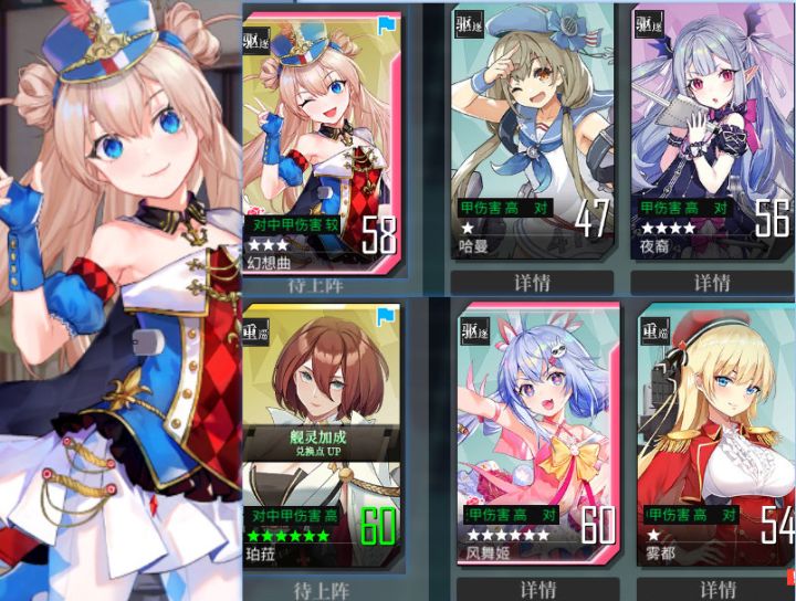 练度视频中有展示,可暂停观看。3星幻想曲(婚),3星珀菈,6星风舞姬(婚)。风舞姬只是补输出的6星和婚都不是必须的。幻想曲是打捞活动的劳模,等演习结算要14天太久了,基本赶不上这期活动了,所以我吃的2个奈亚。幻想曲作为劳模,给个戒指理所应当,不然少4个装备,好感度也全浪费了!