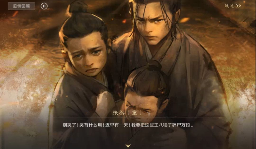 燃烧的火光映照着破败不堪的村落,他们曾无忧无虑的生活,被突如其来的贼寇铁蹄声所吞噬。那一刻,世界失去了色彩,只剩下无尽的绝望与恐惧。他们目睹了母亲用瘦弱的身躯护住兄弟三人,最终倒在刀锋之下的残酷,他们眼中燃烧的不仅是失去至亲的悲痛,更是对这不公乱世无尽的愤怒与仇恨。
