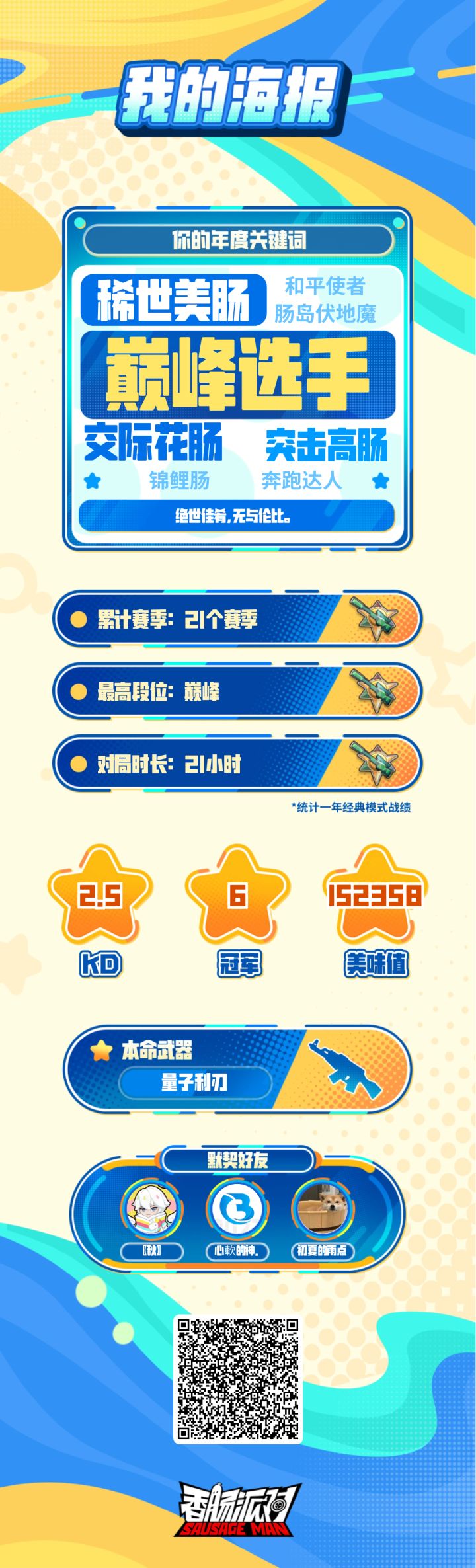 累计赛季:21个赛季最高段位:巅峰对局时长:21小时
