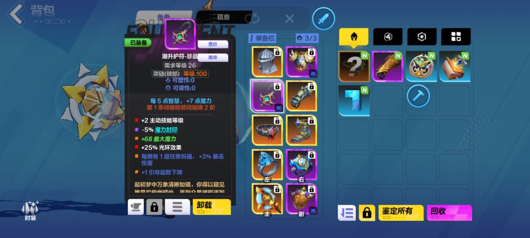 罗莎耗蓝核心装备为盾牌,盾牌可以解梦出格挡回蓝最高数值为8%蓝量,所以我们肯定格挡需要拉满,然后遗物选择变为引导,通过特性给的施法已以及蜜源释放以及电魔灵增益拉满特性的施法速度,达到1秒30次,装备主打智慧蓝量百分比以及蓝量,项链解梦出智慧+蓝量,主要伤害技能再通过疾风律动拉满触发频率