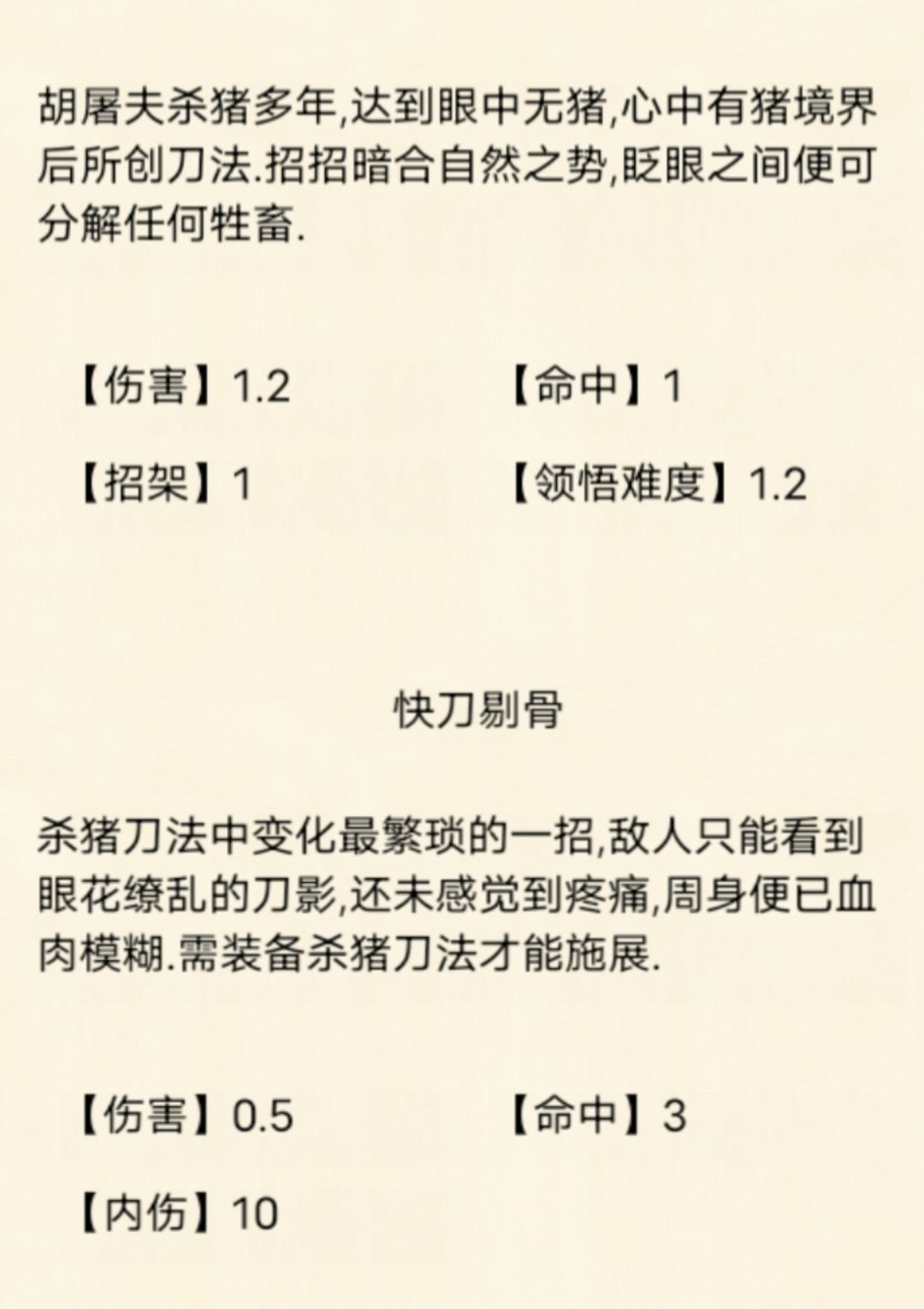 。杀猪刀法的命中、拆招能力很高: