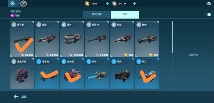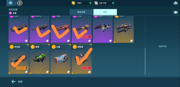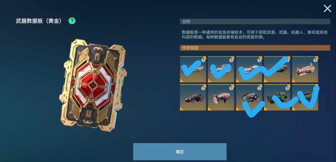 首先,我将所有值得使用的武器全部用勾号标记了出来,没有勾的武器,一律不建议使用或培养