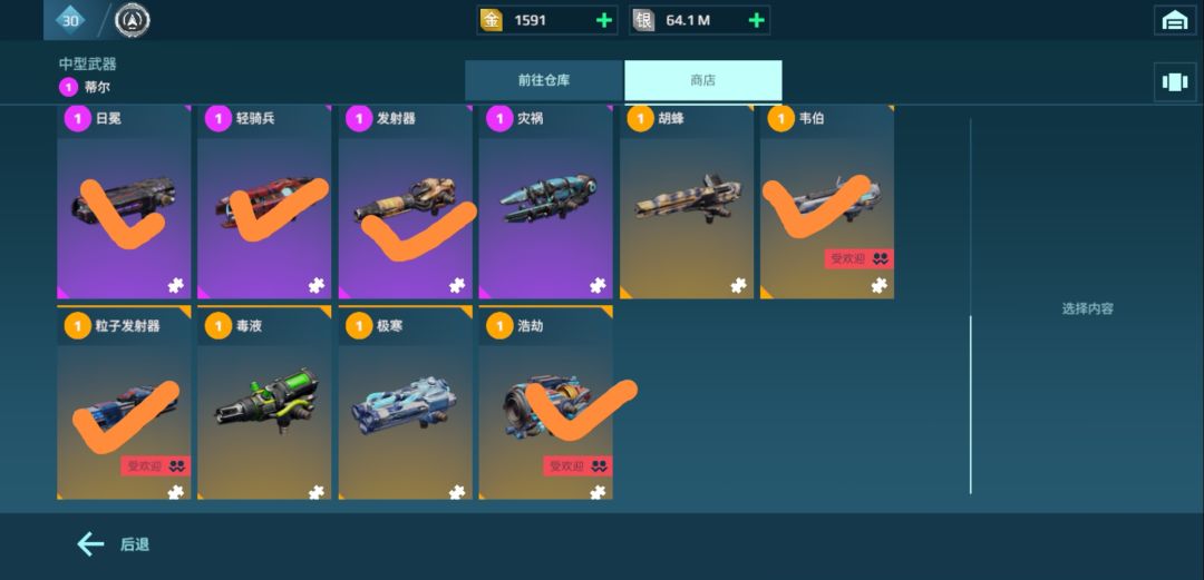 橙色武器(这类武器获取难度就比较大了,而且培养价格极其昂贵)推荐认真看