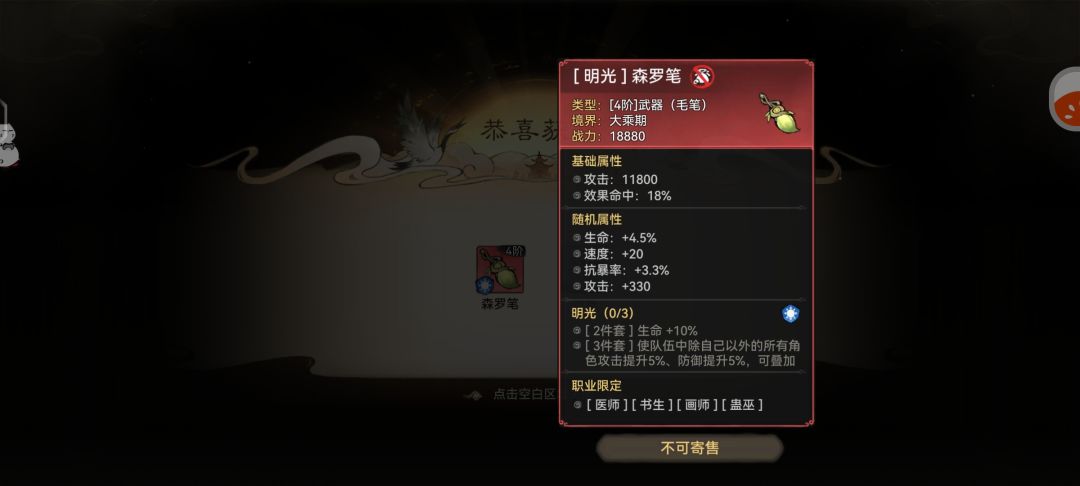 这是炼制出来的,词条随机,属性初始比较高