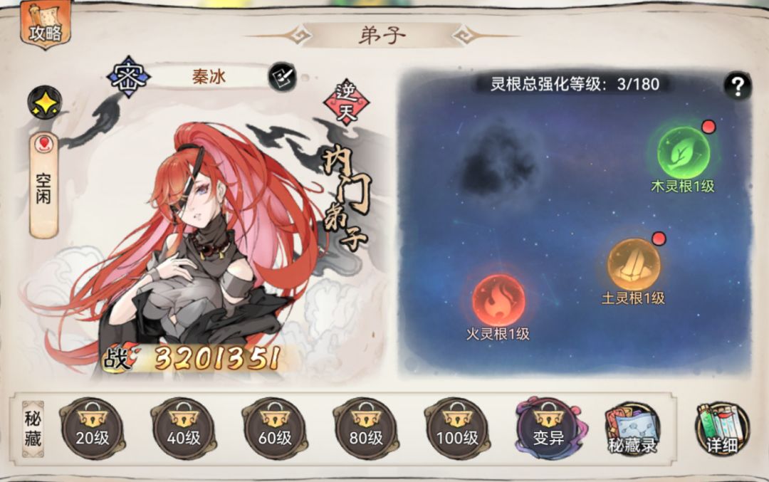 2)同一个弟子可以变异其所有的灵根,但只能激活一种灵根并享受其特殊属性加成。