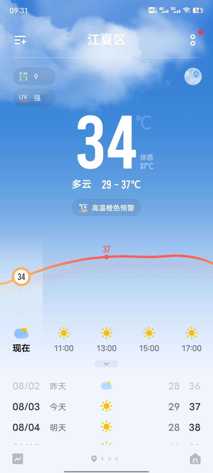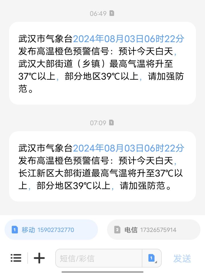 连发两条高温预警,湿度也高,高温蒸桑拿啦(武汉天气预报从来不会报超过39摄氏度)