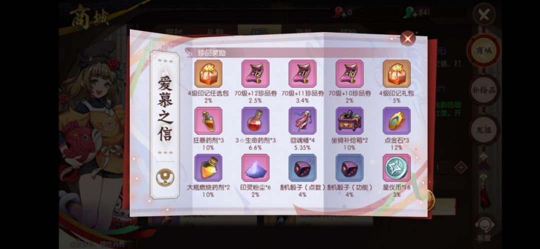 虽然爱慕之信性价比极高,但是如果单纯为了粉尘,不考虑开信。