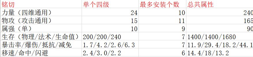 在搞明白铭切带来的收益之前,咱们要先看一下,满级的四级铭切带来的收益如何: