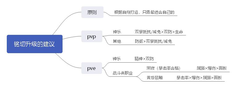 上面是关于这几种铭切的成长介绍,下面咱们看一下铭切升级的相关建议。