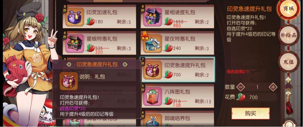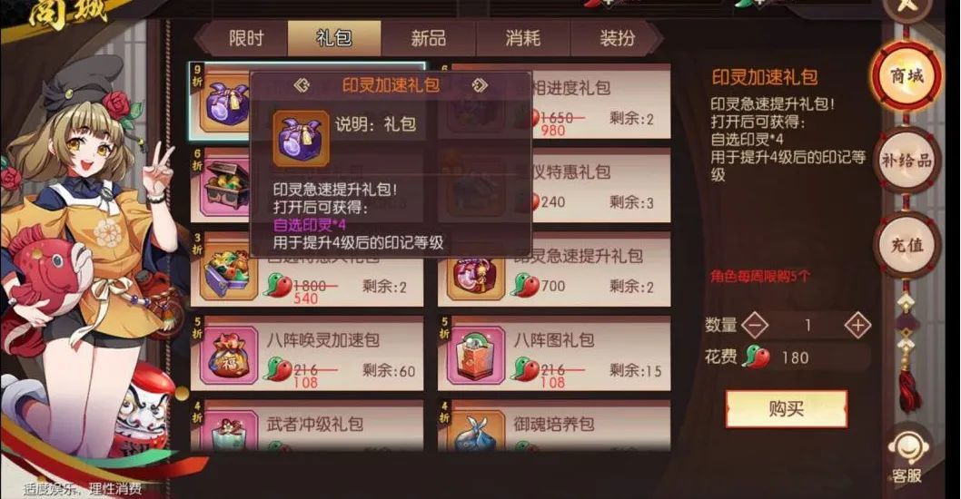 (4)当你想要快速提升的时候,商城的自选印灵礼包真的是个不错的选择。