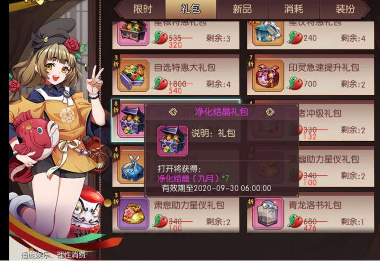(180勾玉一个印灵礼包含有四个印灵,但是56勾玉一个净化结晶礼包,三个礼包仅仅168勾玉,就可以获得5个自选印灵哦!)