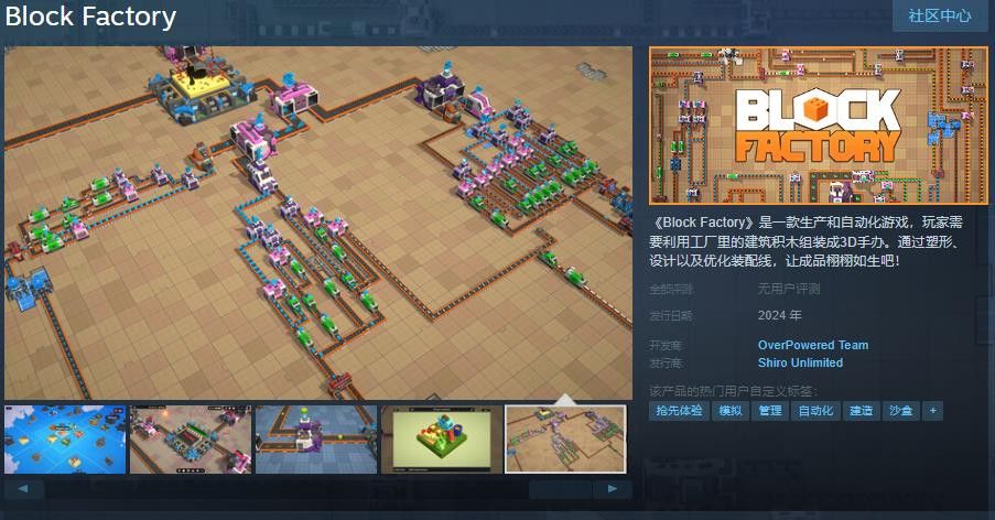 生产和自动化游戏《Block Factory》Steam页面上线 支持中文