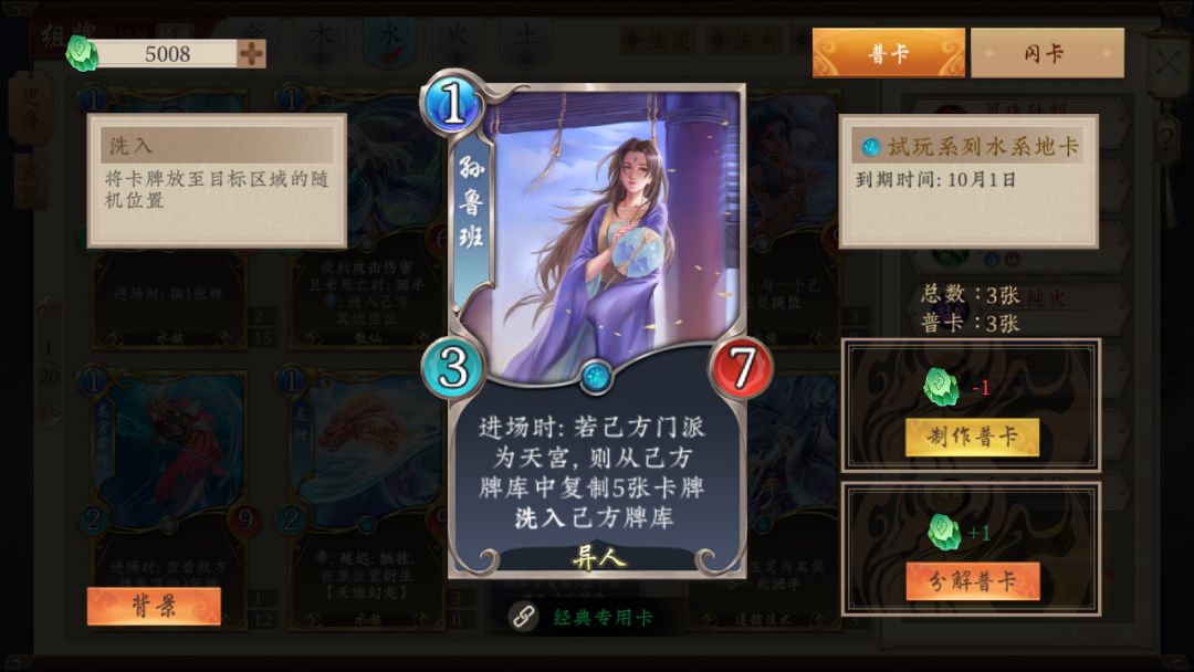 天宫新出了一张〖孙鲁班〗,衍生玩法多很受欢迎。特效也指明了〖天宫〗触发,虽然没说别的门派不给用。但这张卡基本开启了“门派专有卡”的先河,未来专有卡全面问世可见端倪。