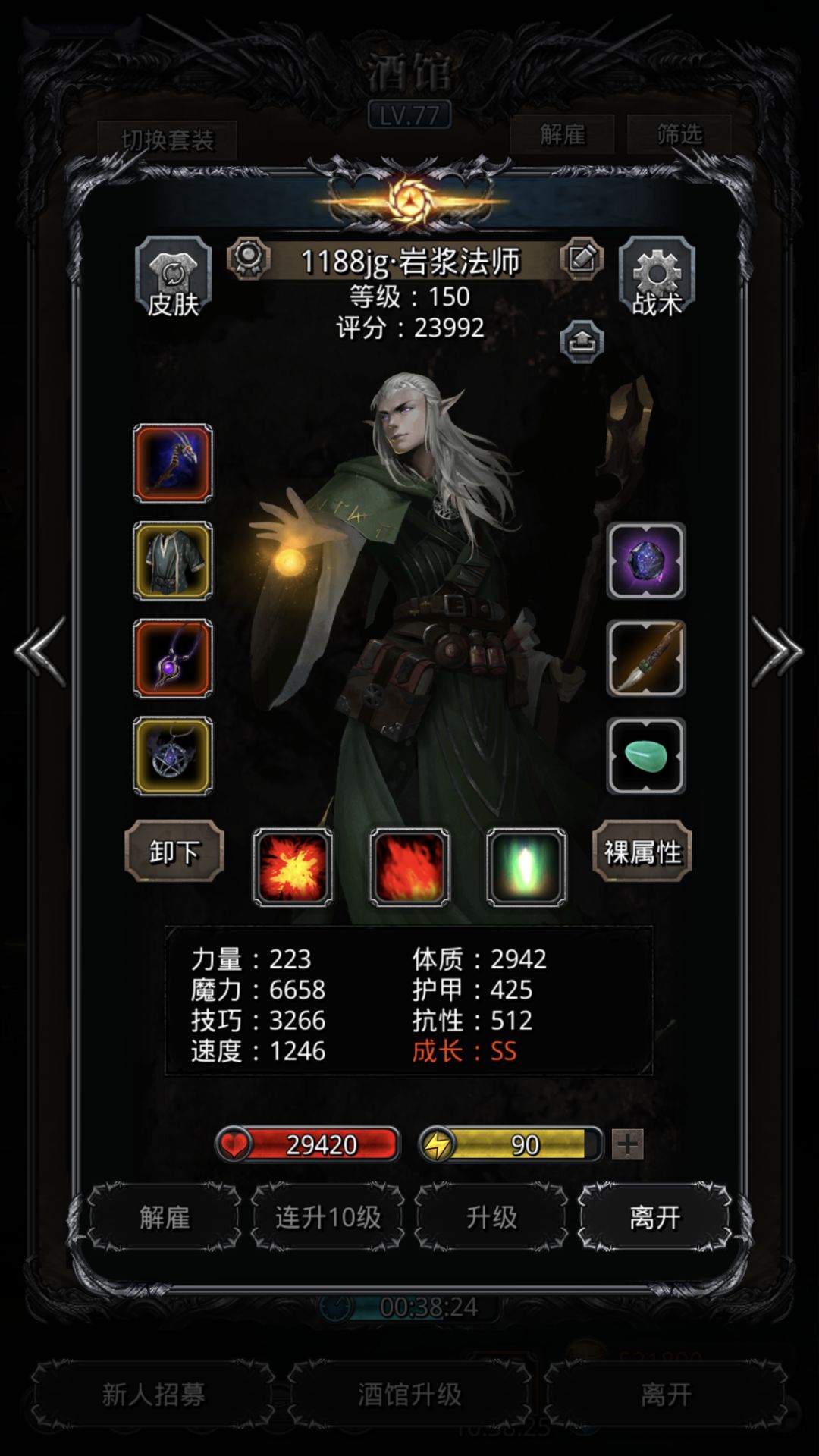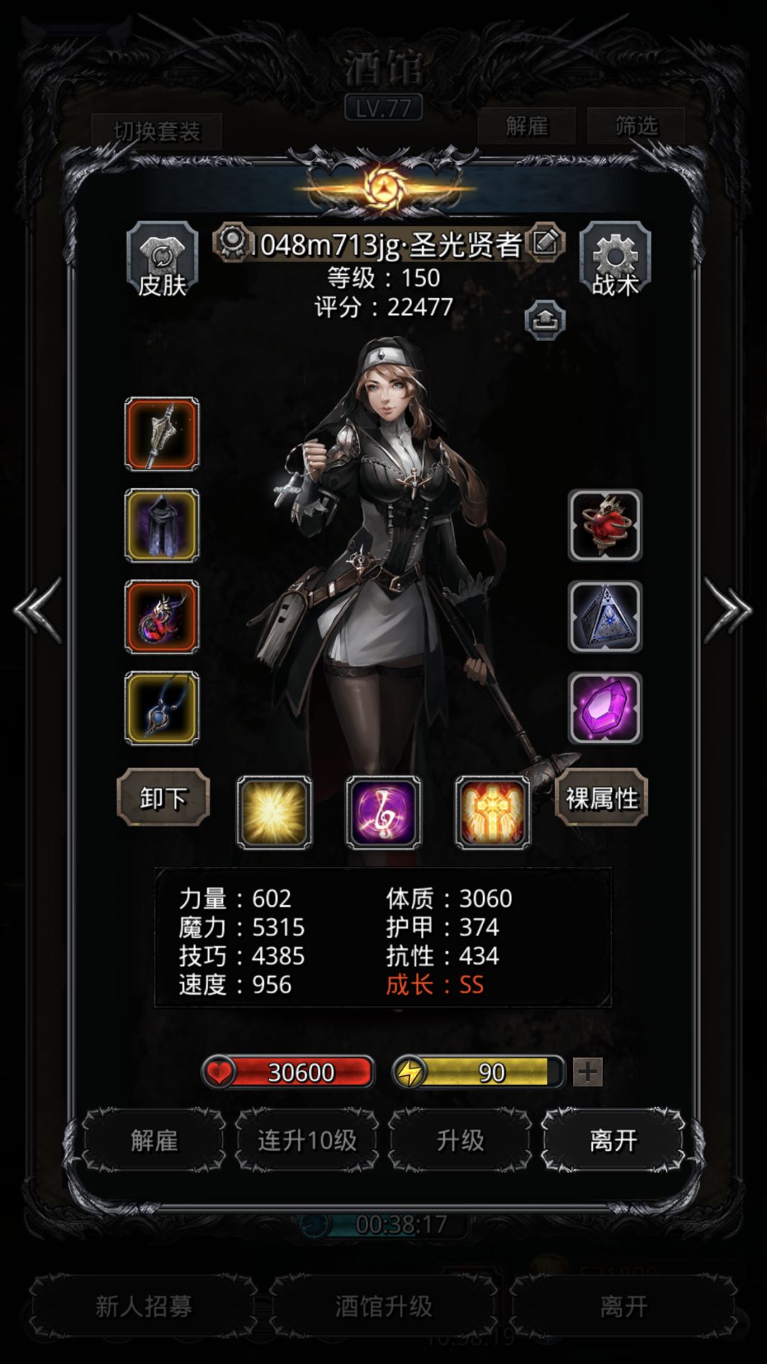 终于攒够了魂,等级升满之后一次过。火法35%奶挂机即可,黑骑嘲讽虚弱手动挂机,黑骑的命中尽量高,否则吸不上血很容易暴毙!圣迹法师84 圣职81 其余80 锻造今天刚119