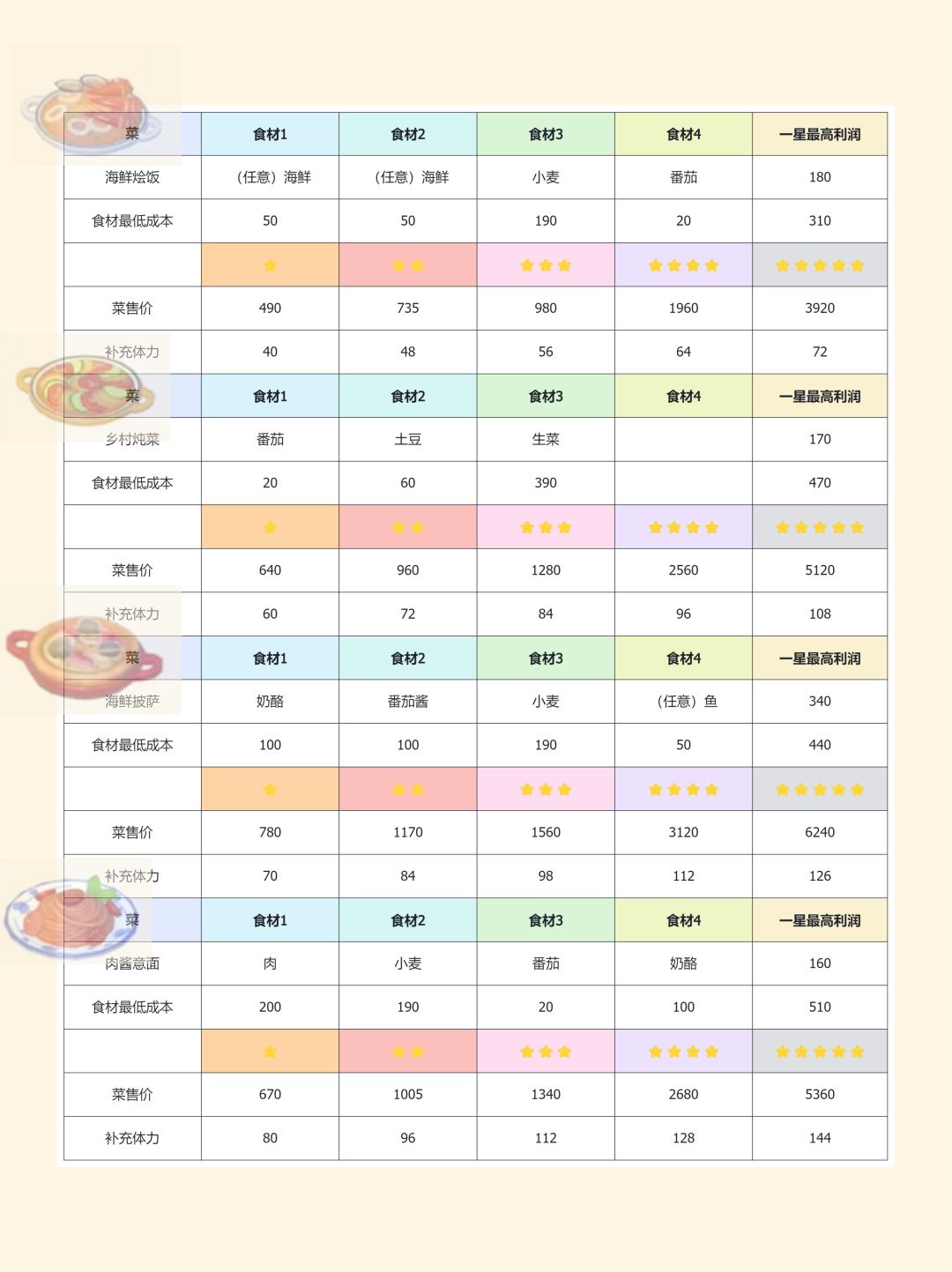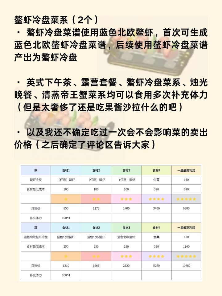 体力、挣钱、菜谱图鉴全部拿下!