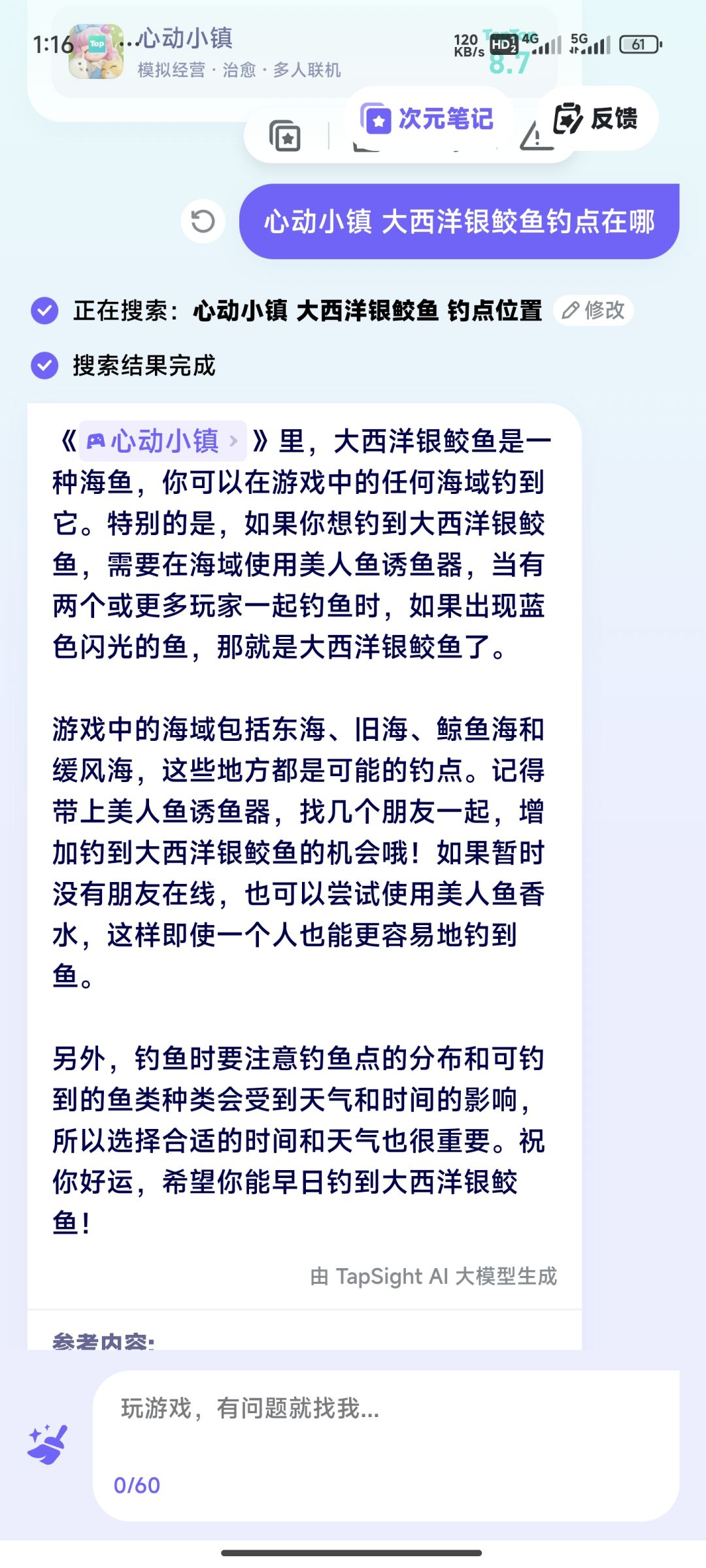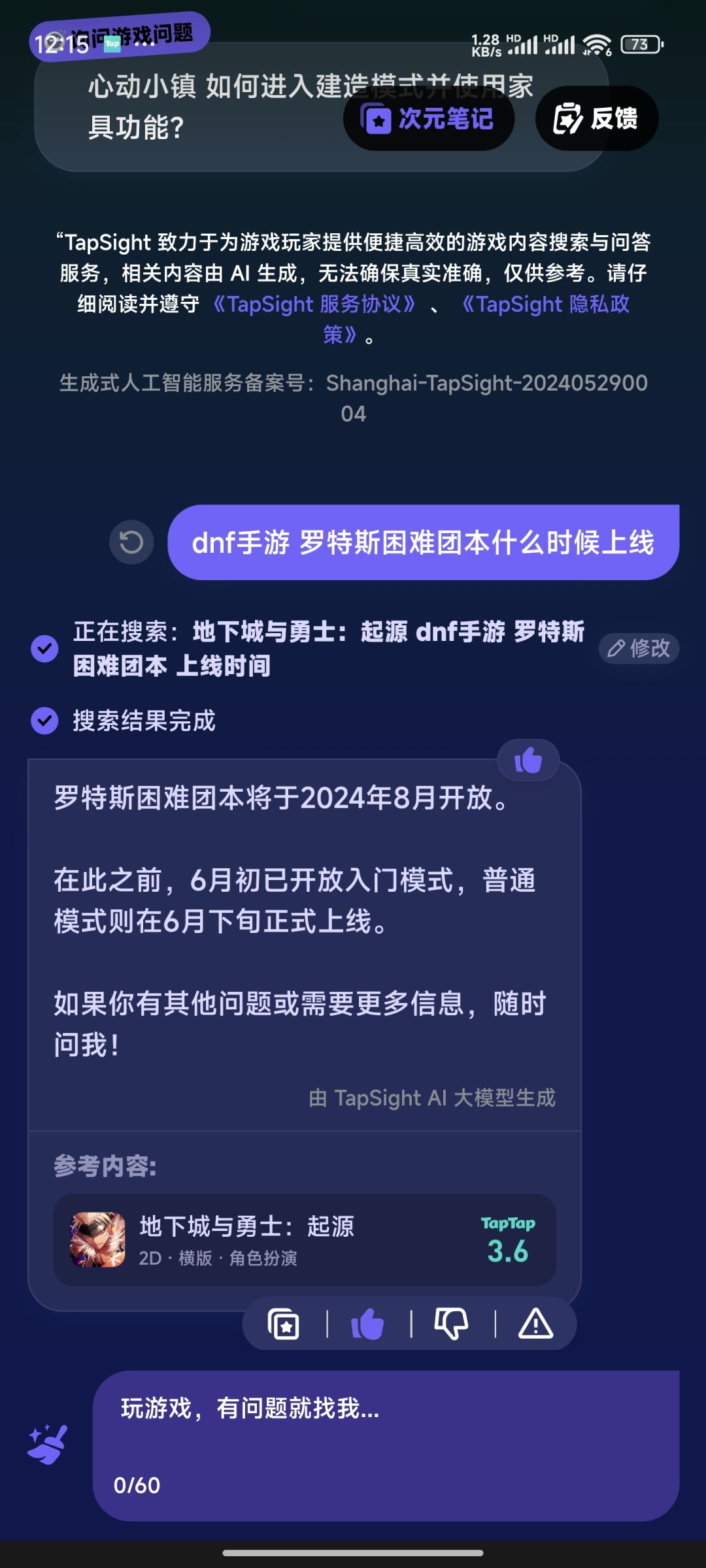 1. 大量更新了知识库,对于心动小镇、麦芬、dnf等的攻略更新,做了大量适配,可以更精准的回答细节问题