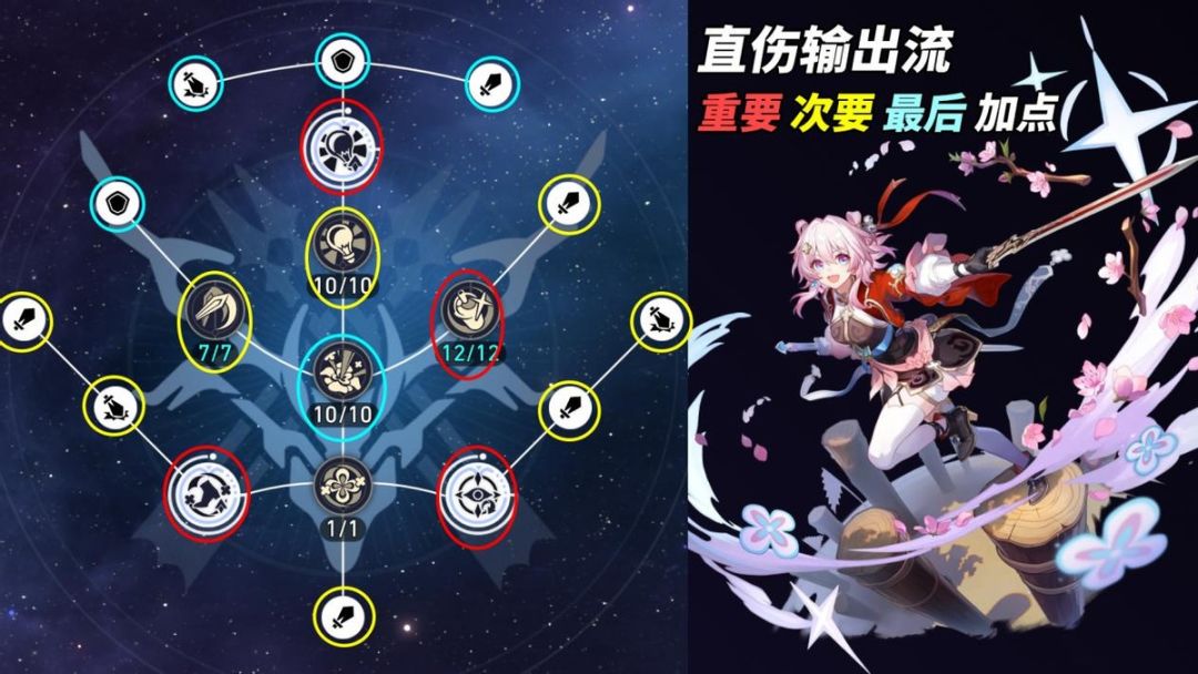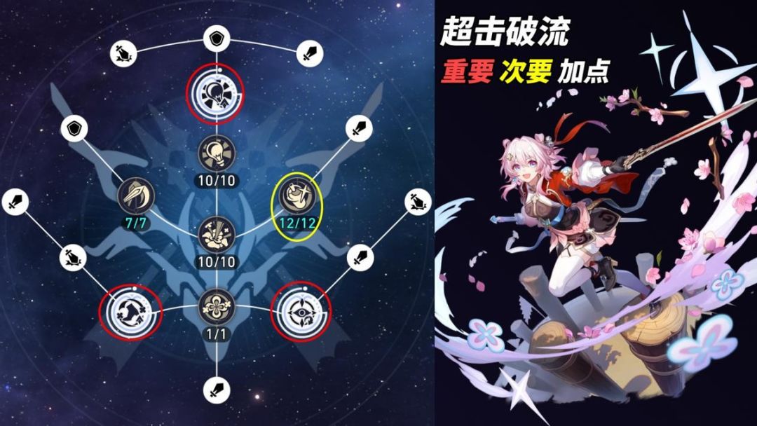 【天赋加点】额外能力=战技>>普攻=攻击力/暴击伤害(额外属性)=天赋>终结技>防御(额外属性)。以战技作为分界线,若是不在乎三月七副C伤害,则只需要考虑额外能力与战技即可,其余都不影响你辅助队友。