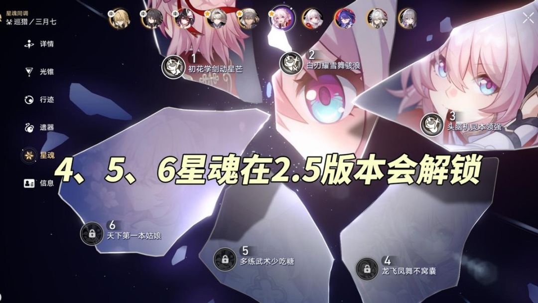 剧情解锁巡猎三月七本体,活动解锁相关星魂,对于这种白送且满魂的角色(2.4三魂2.5满魂),向来都是多多益善来者不拒的。这期就来聊聊新三月七的养成攻略,希望可以让大家又多几种配队~