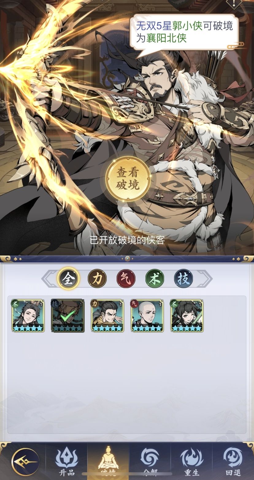 那下面就给大家说说有哪些可以在前期先升品,后期直接破镜的侠客。郭小侠